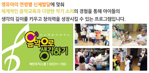 1£º1 ´ãÀÓÁ¦·¹½¼°ú ´Ù¾çÇÑ À½¾ÇÇÁ·Î±×·¥À» µµÀÔÇÏ¿©, ¾ÆÀ̵鿡°Ô ü°èÀûÀÎ ½Ã½ºÅÛÀ¸·Î À½¾ÇÀ» ÁöµµÇϰí ÀÖ½À´Ï´Ù.